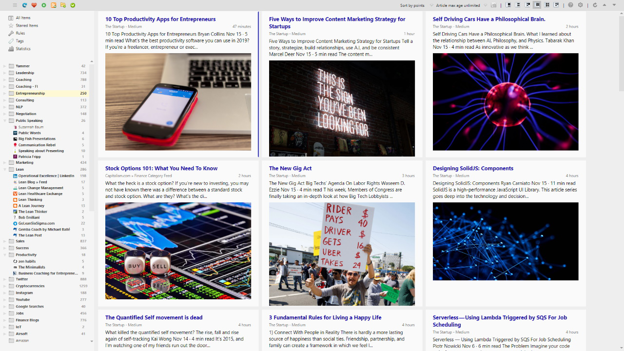 Seit der Version 64 hat Mozilla beim Firefox die Funktion des Lesens und Anzeigens von RSS-Newsfeeds entfernt. Dieses Feature kann man jedoch durch ein Add-On namens Feedbro wieder zurück bringen. Und dieses Feedbro ist eine sehr gute, fast mächtige Oberfläche, bei der man beliebig viele Newsfeeds einbinden kann.