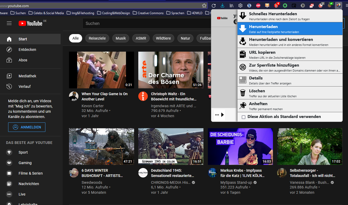 Es gibt z.B. auch kleine „Tools“, mit denen man Videos und/oder Grafiken von verschiedenen Plattformen im Internet herunterladen und auf der eigenen Festplatte speichern kann. Eines davon ist der Video Download Helper. Dieses feine Tool ist für den Firefox verfügbar.