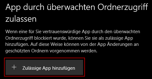 Der „Überwachte Ordnerzugriff“ ändert nicht etwa die Berechtigungen von Dateien oder Verzeichnissen auf dem Computer. Er überwacht lediglich die Anwendungen, die – ausgestattet mit den Rechten des Benutzers/Admin – auf die Dateien zugreifen können. Über eine sogenannte Whitelist kann der Zugriff erlaubt werden. Nicht erlaubte Apps hingegen, werden automatisch blockiert und können so nicht ausgeführt werden.