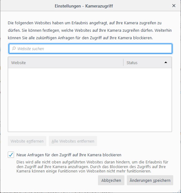 Selbiges gilt für die Einstellungen des Zugriffs auf Ihre Kamera. Schützen Sie sich selbt, indem Sie den Zugriff ab der ersten Minute der Browserbenutzung untersagen!
