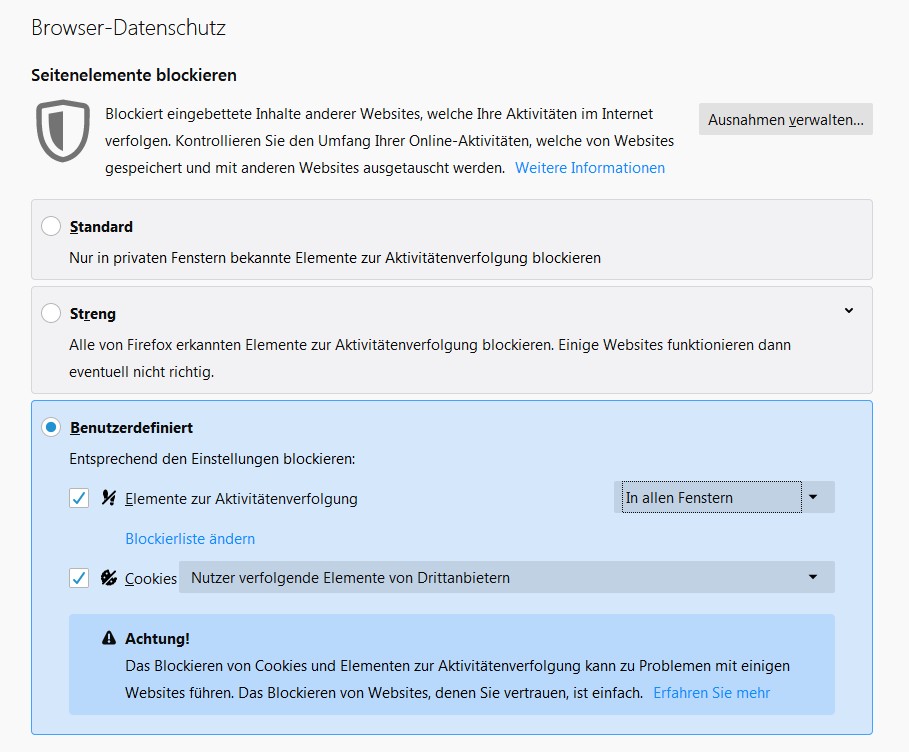 Der Internetbrowser Firefox bietet einen sehr guten Schutz Ihrer Privatsphäre. Jedoch wird bei der Erstinstallation des Browsers nur minimaler Schutz