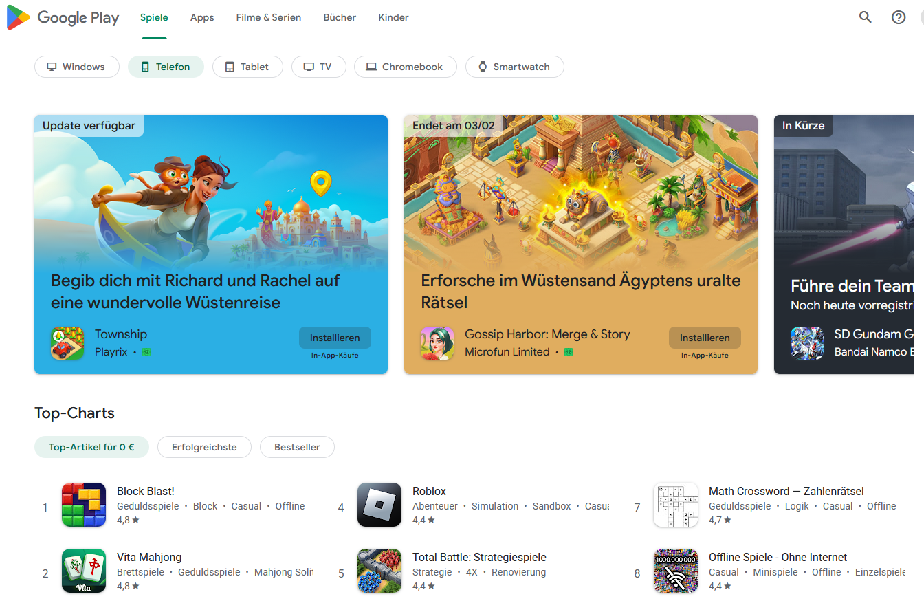 Abb. 1: Der Google Playstore (Screenshot vom Windows-PC)